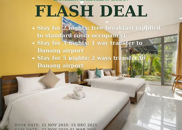Hội An liegt ca. 3 km von dem 4-Sterne-Hotel Lancelynk Retreat Hoi An entfernt und ist unbedingt einen Besuch wert. Im ganzen Gebäude können die Gäste von WLAN profitieren.